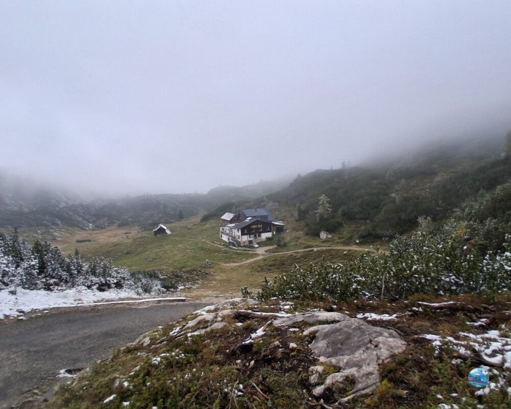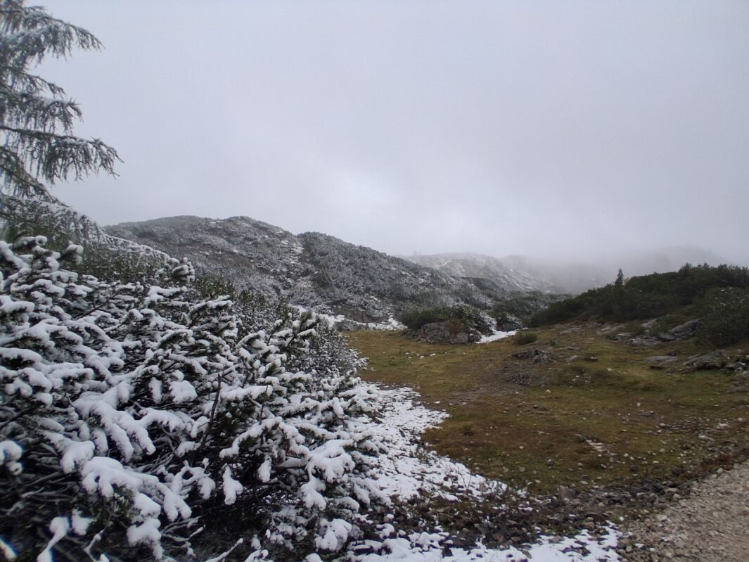 Lent, Obertraunban még kora őszi idill fogadott: halovány napsütés, sárguló falevelek, és kellemes, túrázásra csábító hőmérséklet. A levegő friss volt, de barátságos – az ember szinte el sem tudta képzelni, hogy pár száz méterrel feljebb már teljesen más világ várja.