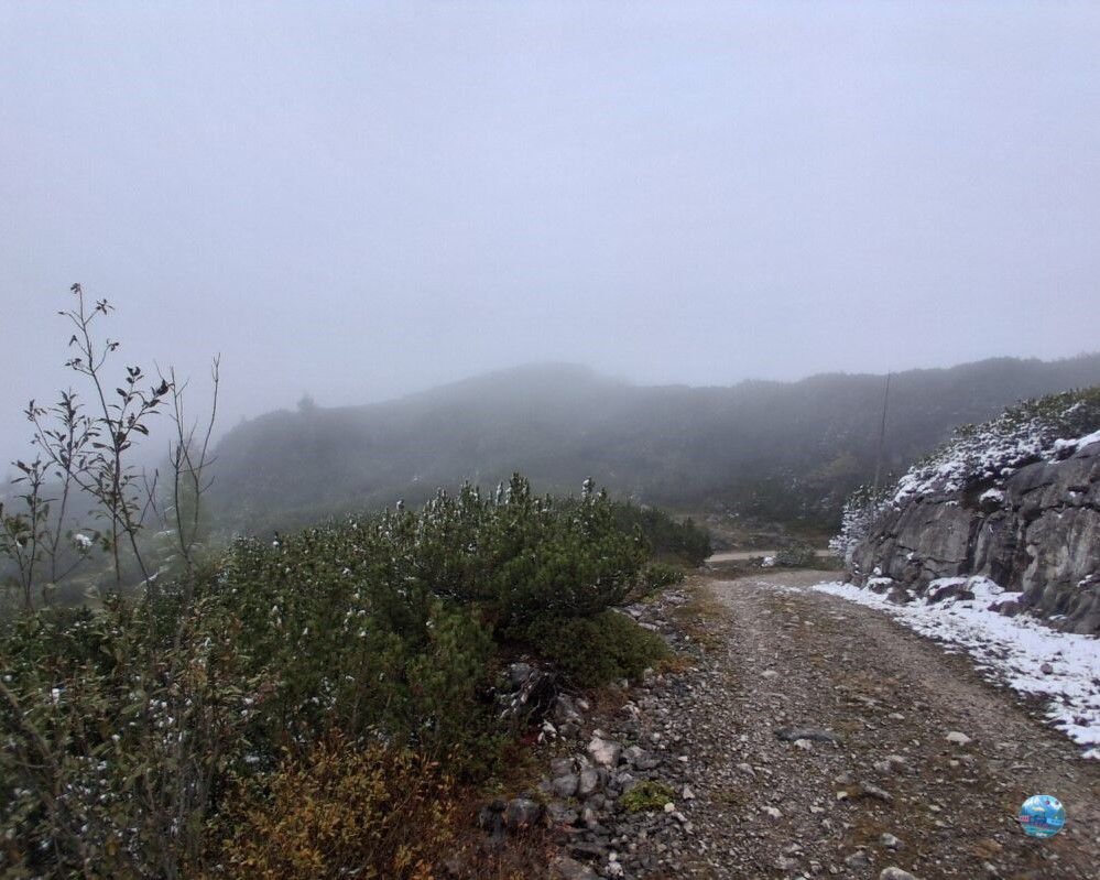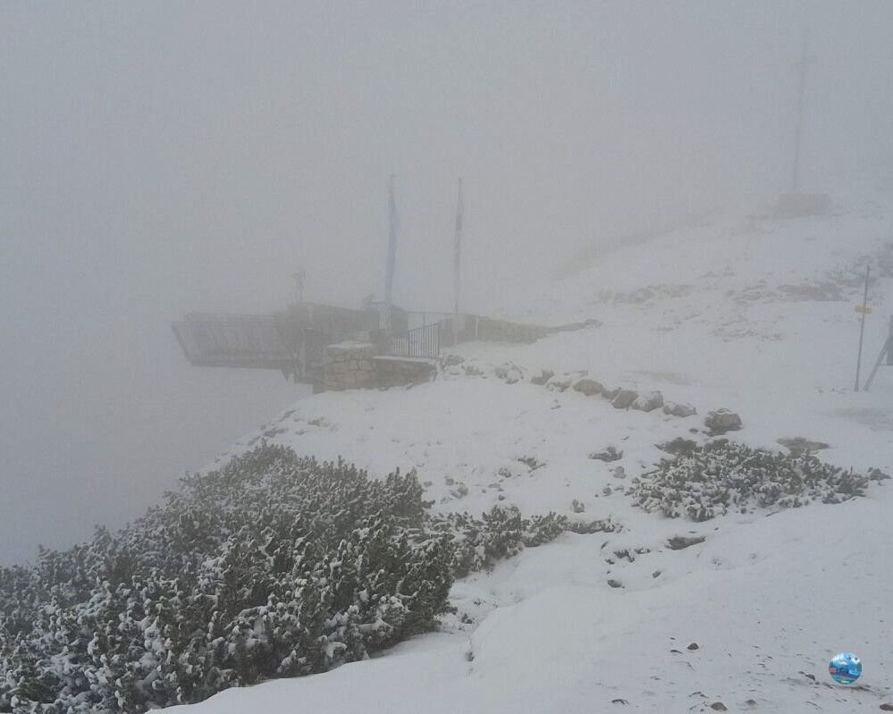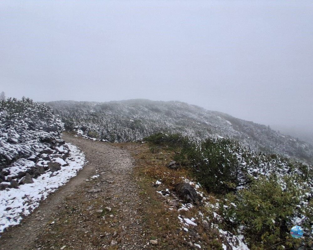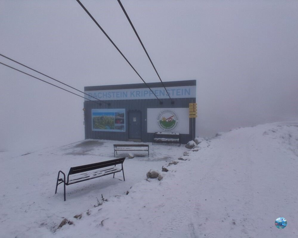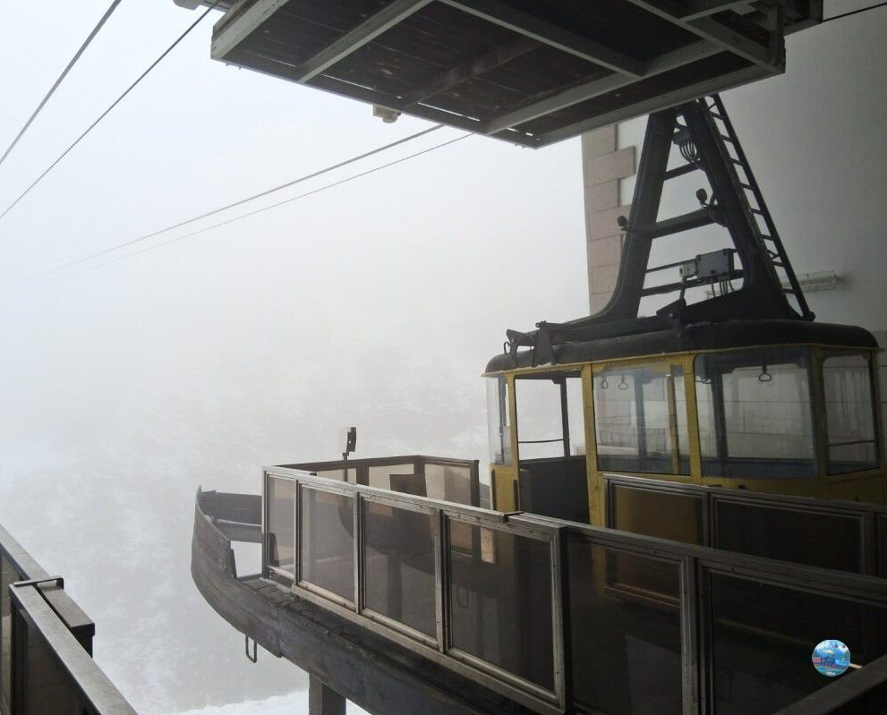 A látogatásom során – mely október elején volt – az időjárás három különböző arcát mutatta meg. Már a pénztárnál figyelmeztettek – ahol webkamerán is látható az időjárás alakulása a hegyen – hogy csak az első állomásig érdemes utazni, mert feljebb már nem lehet látni semmit a köd miatt. Ennek ellenére kíváncsi voltam, és felmentem, hátha itt is olyan szerencsém lesz, mint a Gosaualmon, ahol a szélnek köszönhetően oszladozott a felhőzet, és csodálatos panoráma nyílt a tóra – de sajnos nem lett szerencsém.