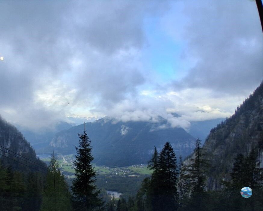 A Krippenstein csúcsára utazva azonban hirtelen minden megváltozott: kb. félúton a lanovka elérte a felhőket, a kilátás egyre halványabb lett, majd el is tűnt, miközben egyre hidegebb lett. A további út során egy-egy fenyőfa sziluettje, a tartóoszlopok, illetve a szembe jövő lanovka látszódott a ködben, néha lefelé pillantva oszladozott a köd, de mégis titok övezi, hogy vajon mi lehet alauttunk.