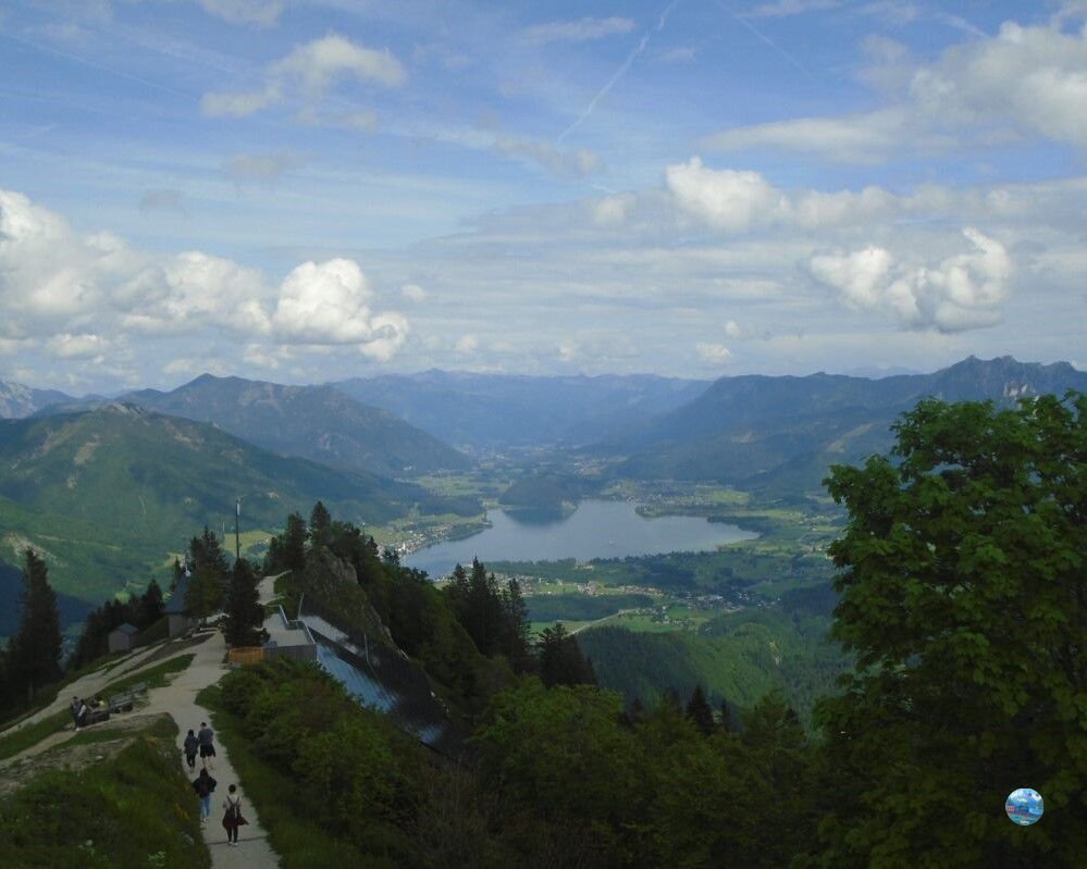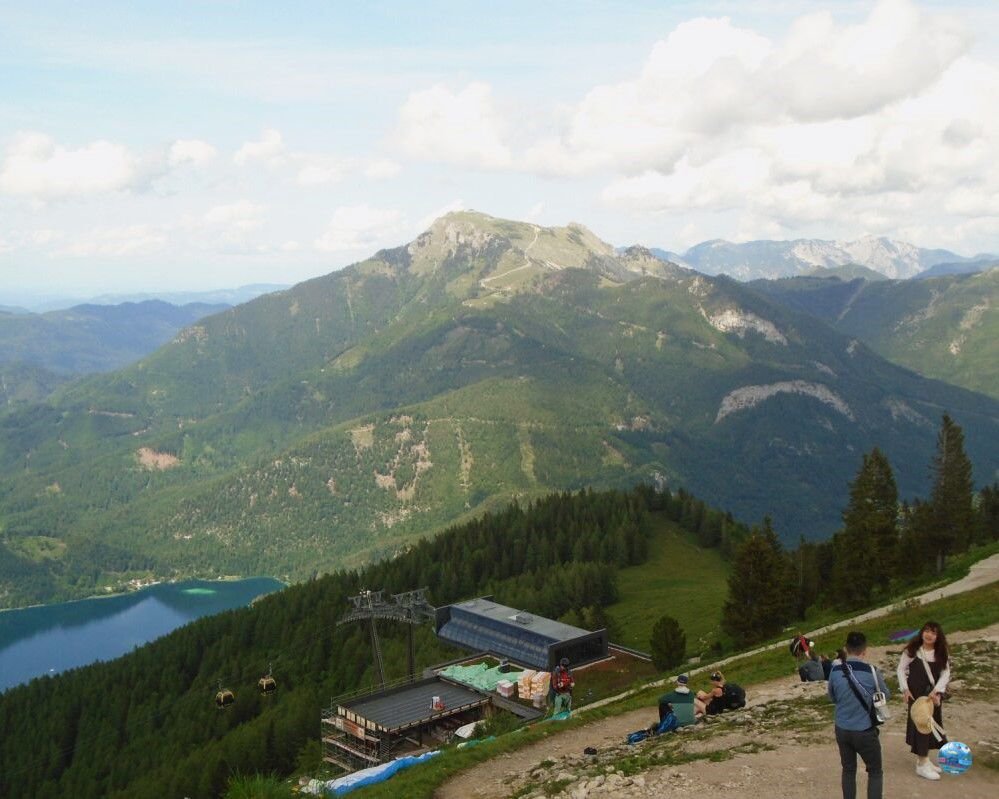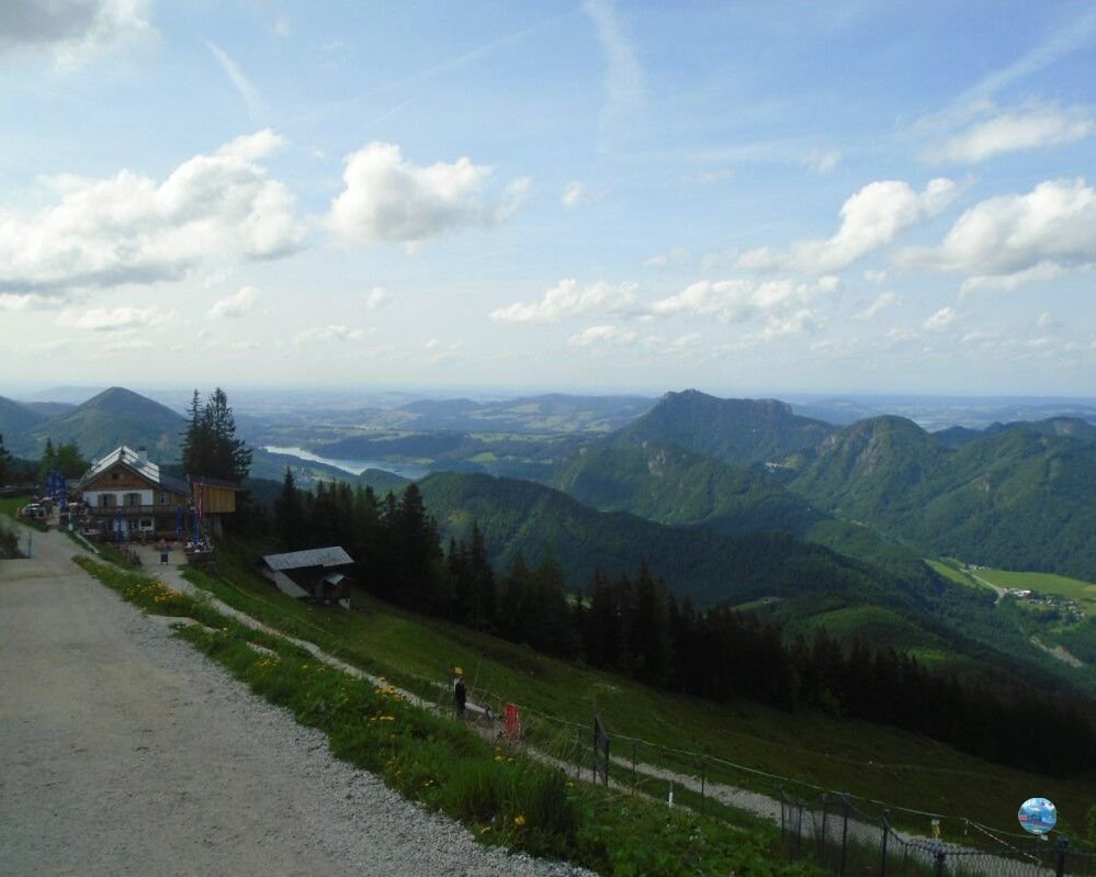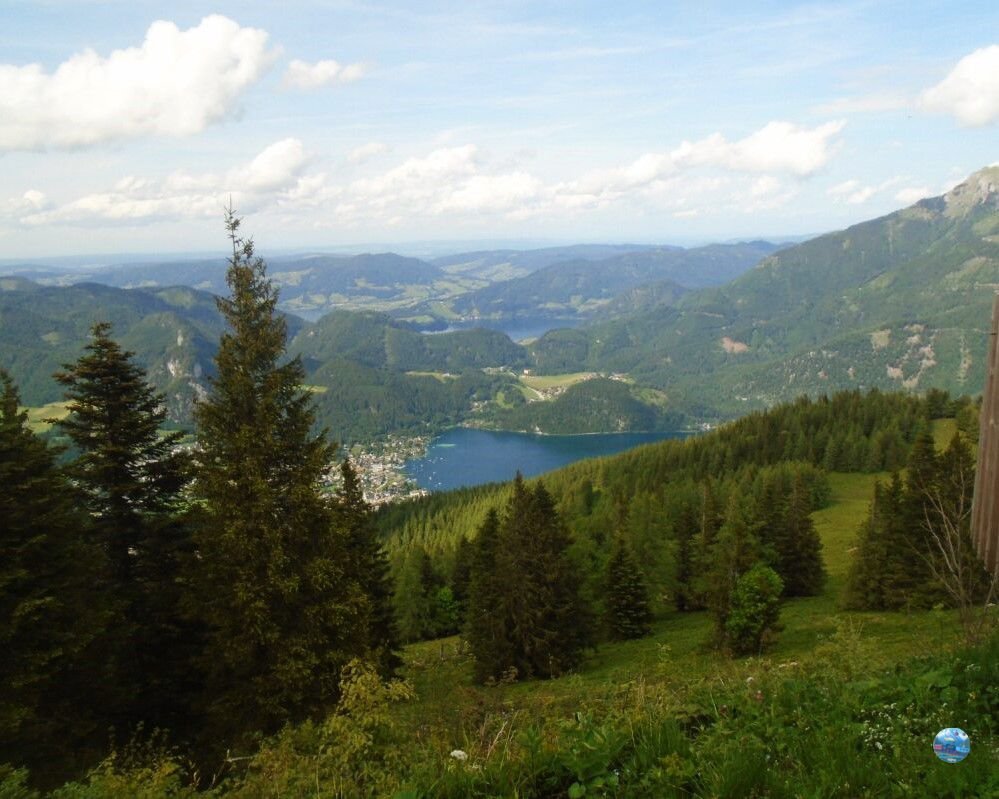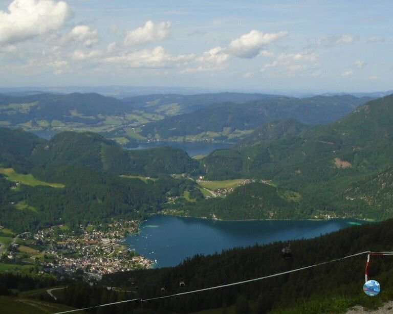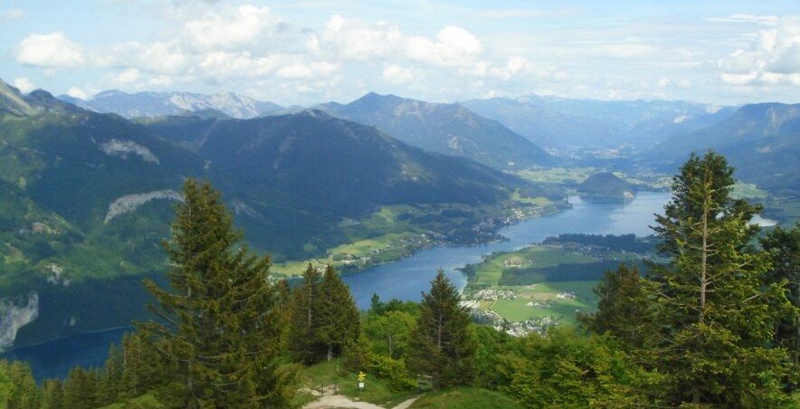 A Zwölferhorn tetején egy teljesen más világ tárul elénk: a tóparti nyüzsgés után itt fent csend, friss levegő és végtelen panoráma fogad. A csúcskereszt a hegyállomástól 10 perc sétával elérhető, és már innen is lenyűgöző kilátás nyílik a Salzkammergut tavaira és hegyeire.